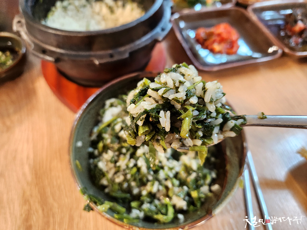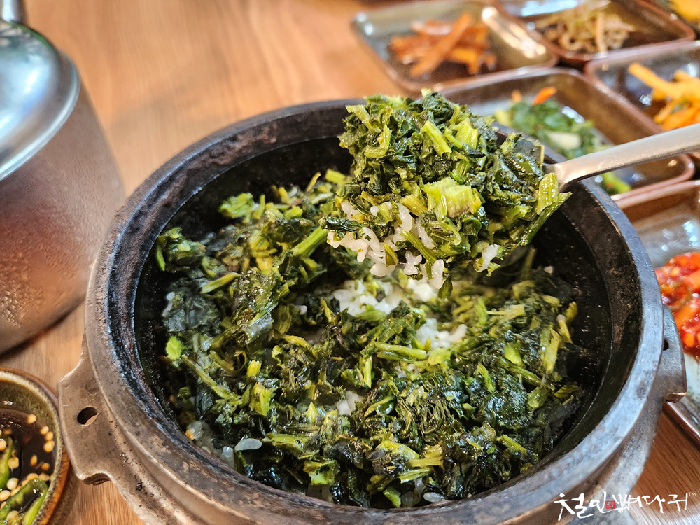 밥을 덜어내서 보아도 곤드레가 반인 것 같습니다.