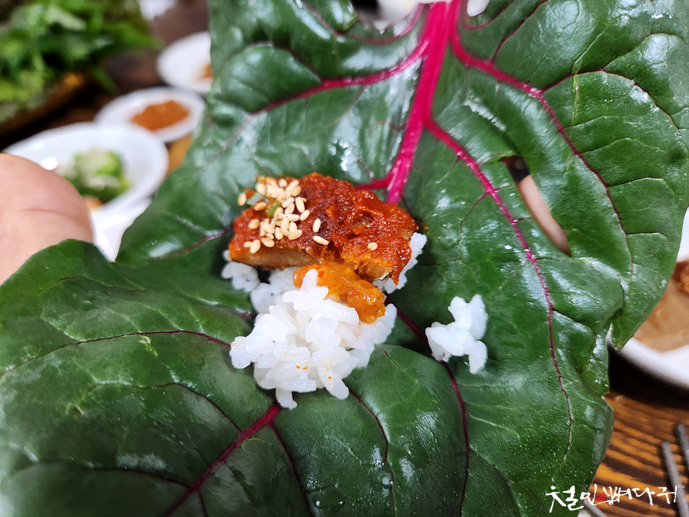 먹다 보니, 우렁쌈장을 추가해야겠다는 생각을 하게 됩니다.