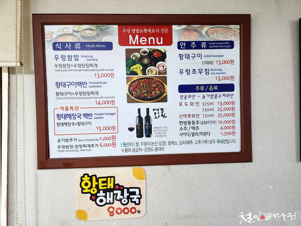 우렁된짱찌개는 황태구이백반에 포함인데,