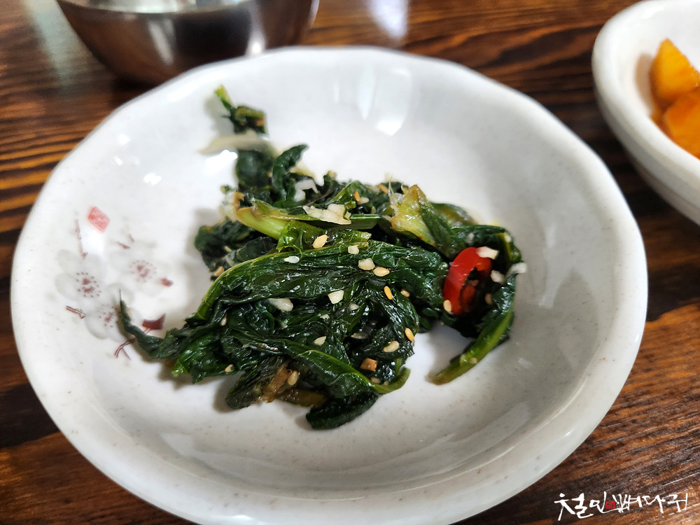 몇 가지 반찬들과 기본쌈장이 나왔는데,