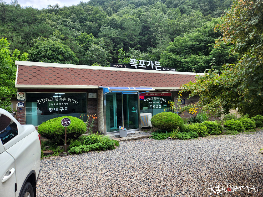 식당, 폭포 들어가는 길은 깊은 숲 속으로 들어가는 듯