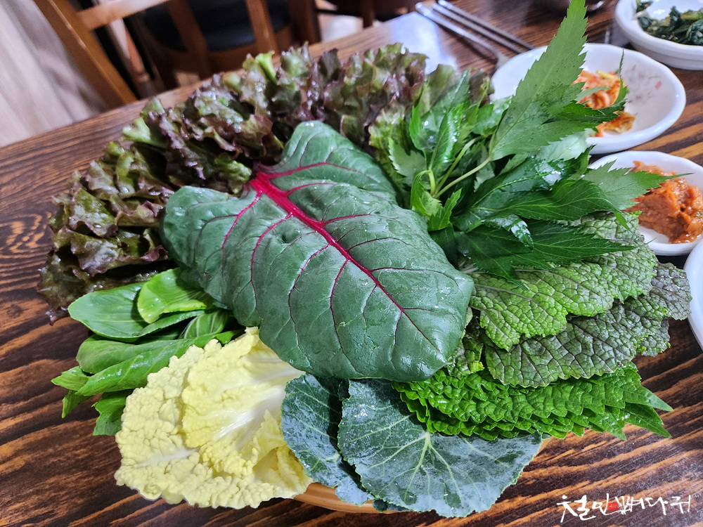 우렁쌈장이 나오니, 쌈 싸 먹는 게 더 맛있어졌습니다.