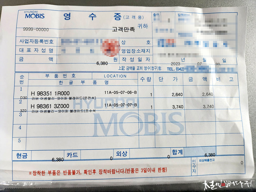20230720 현대i40왜건 와이퍼블레이드 고무날만 교체(운전석.조수석) - https://chulinbone.tistory.com/10792