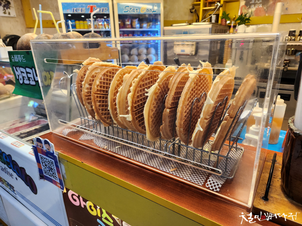 와플이나 소프트 아이스크림,