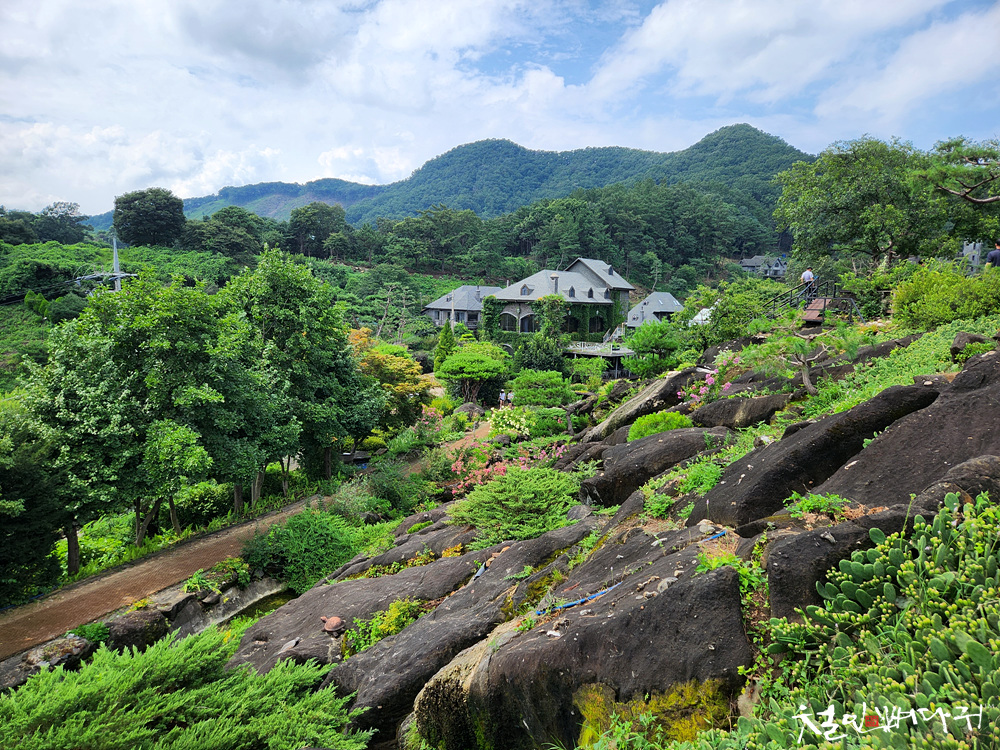 커다란 바위산을 둘러서 산책로가 있습니다.