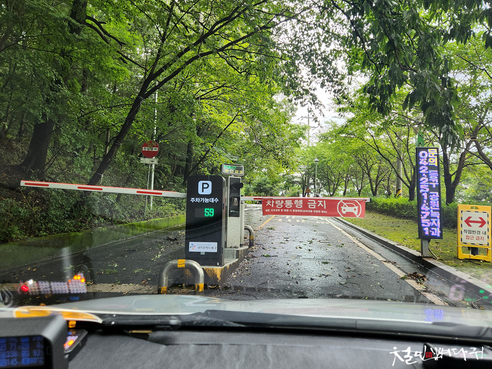 대전 식장산에 갔는데, 산 아래쪽 입구의 차단기에