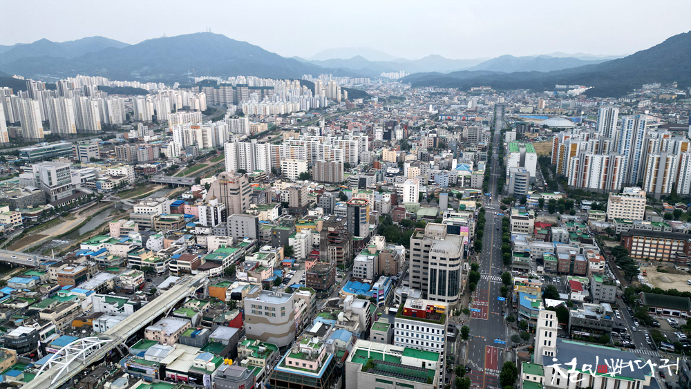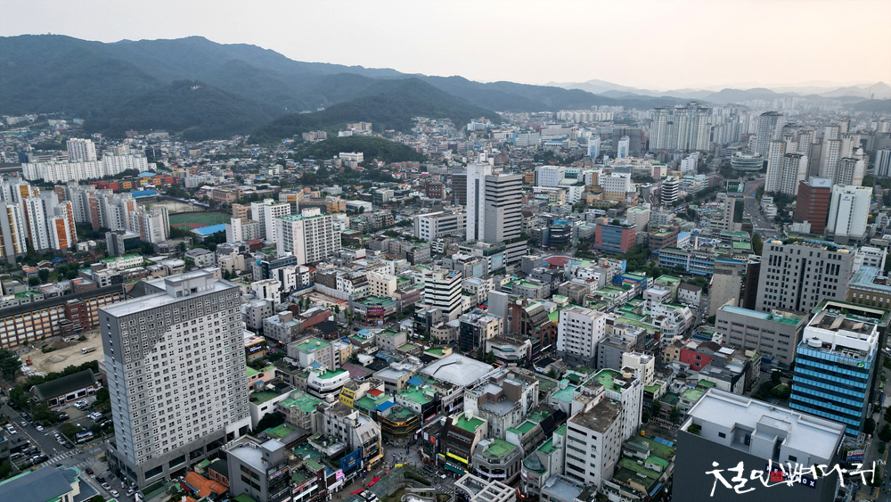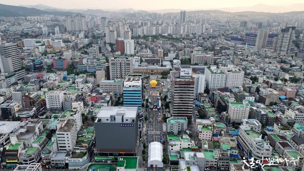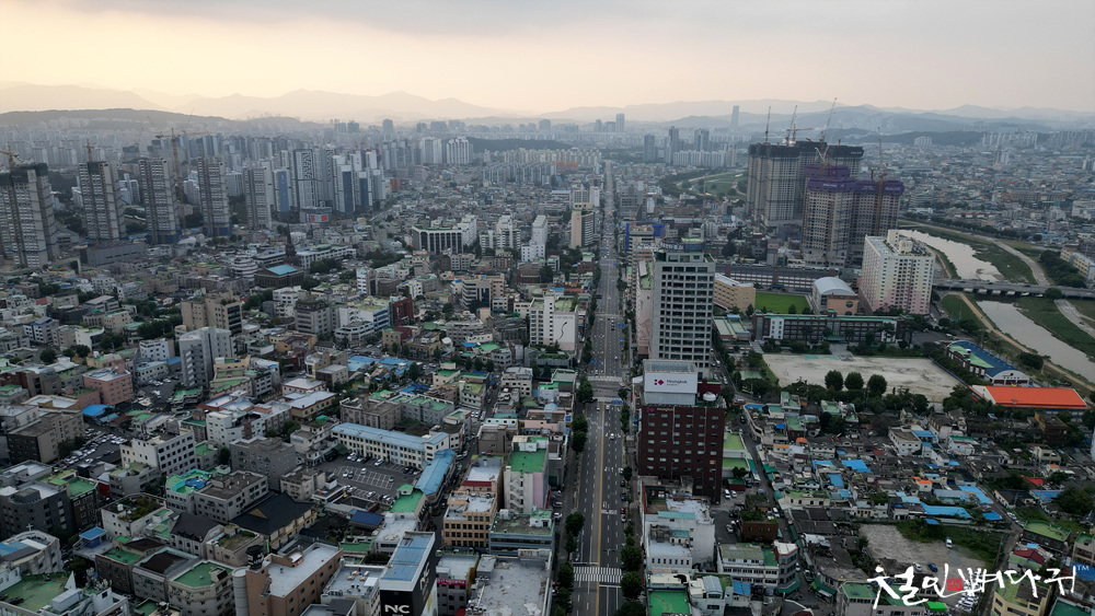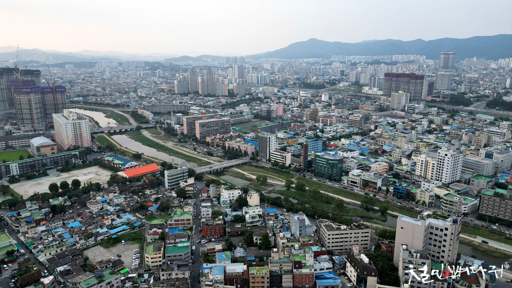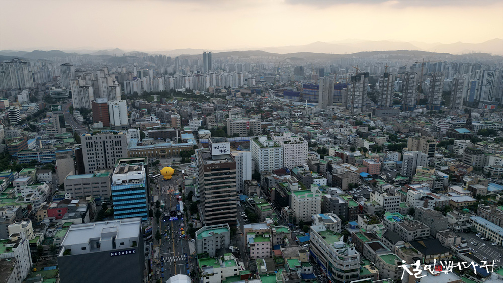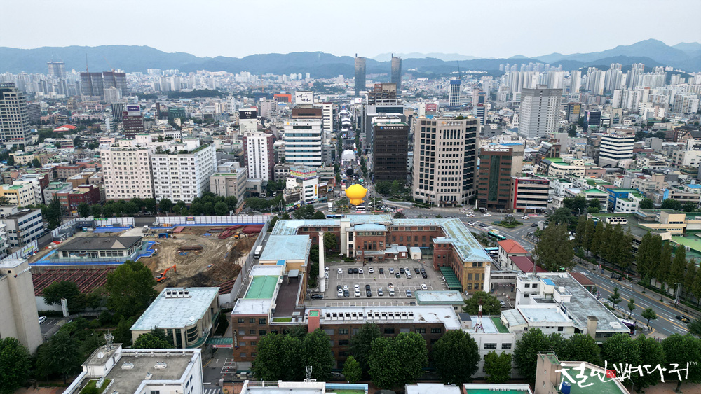 옛 충남도청 앞에서 이륙해서 촬영했습니다.