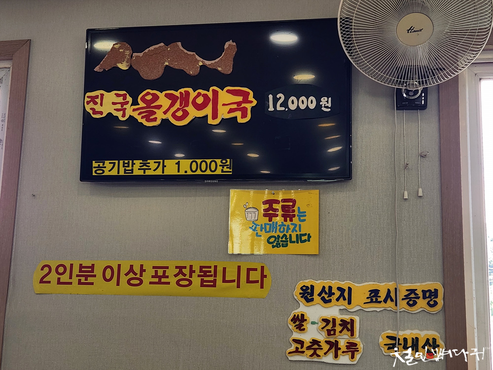 메뉴는 딱 하나, 올갱이해장국 입니다.