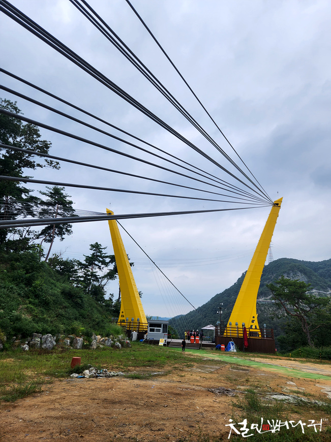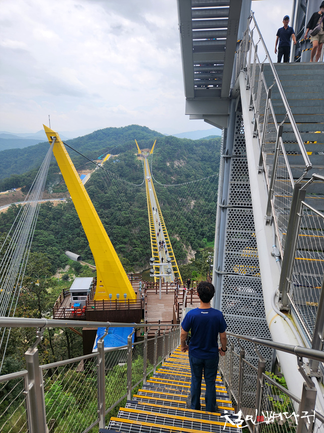출렁다리에서 왼쪽 멀리 보이는 노란색다리는