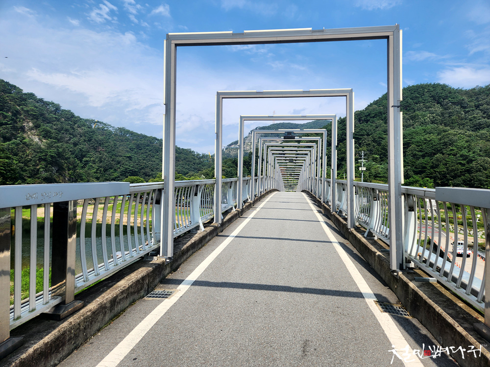 물가로 내려와서 처음 걸었던 출렁다리를 볼 수 있습니다.