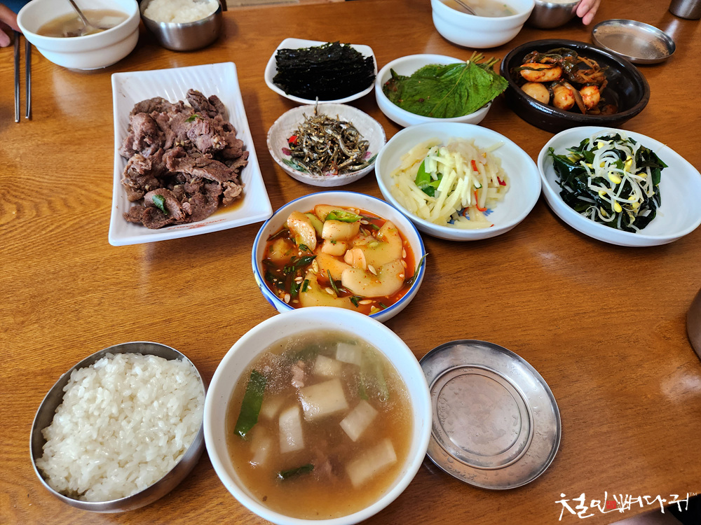 다양한 반찬들이 모두 맛있는 집밥 같습니다.