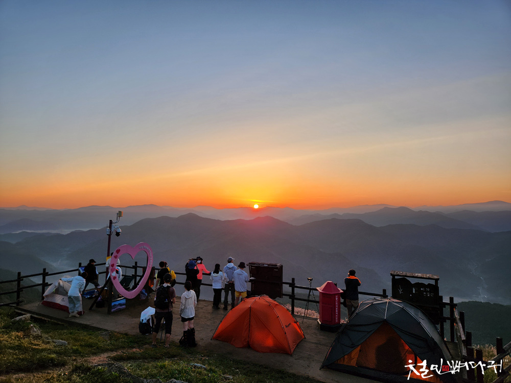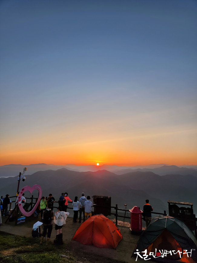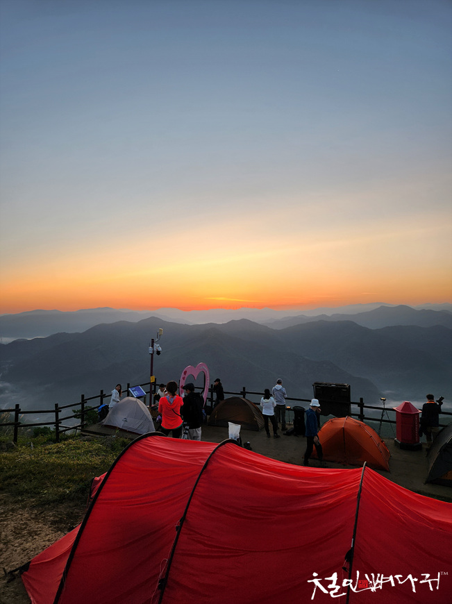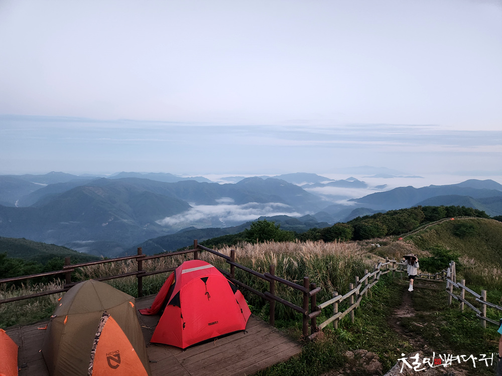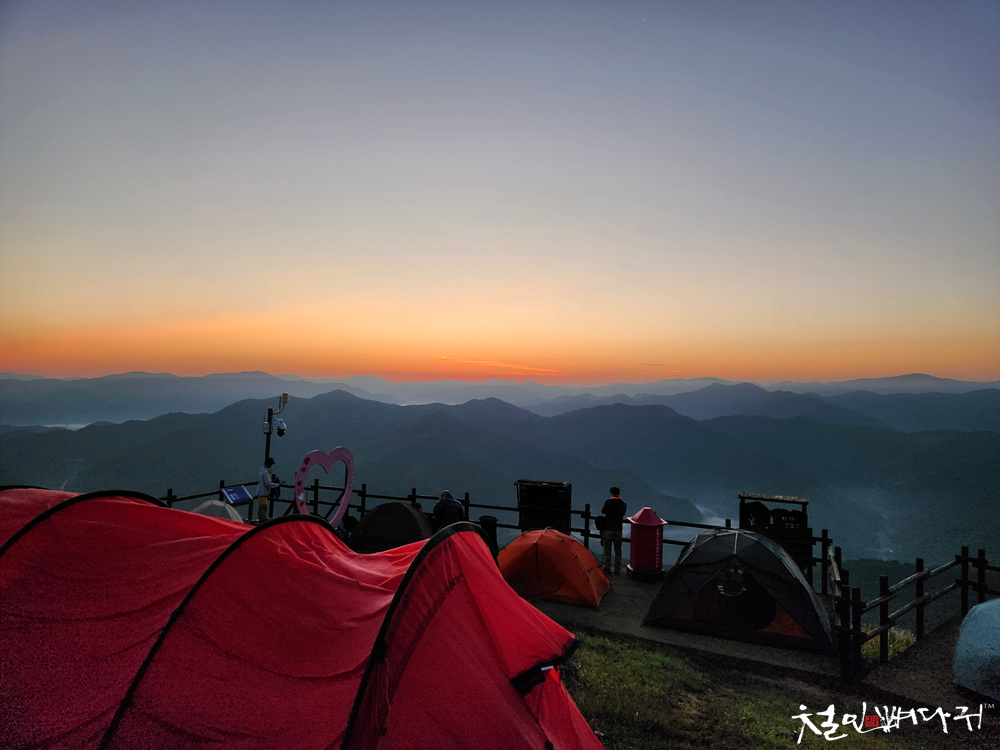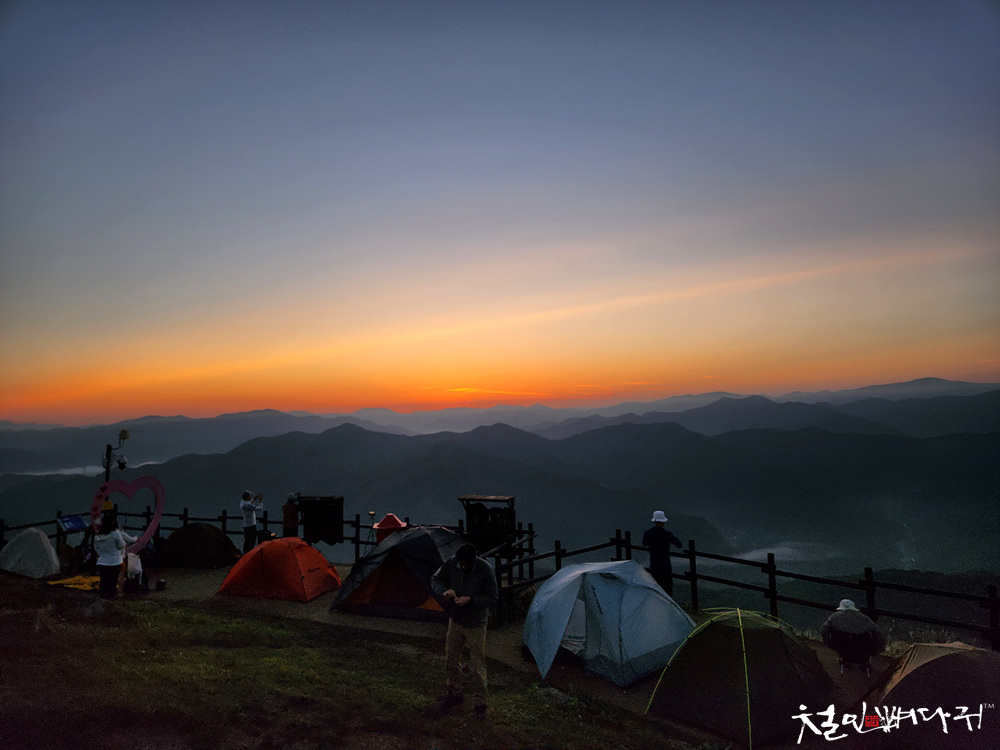 민둥산 정상에는 비박한 텐트들이 많았습니다.