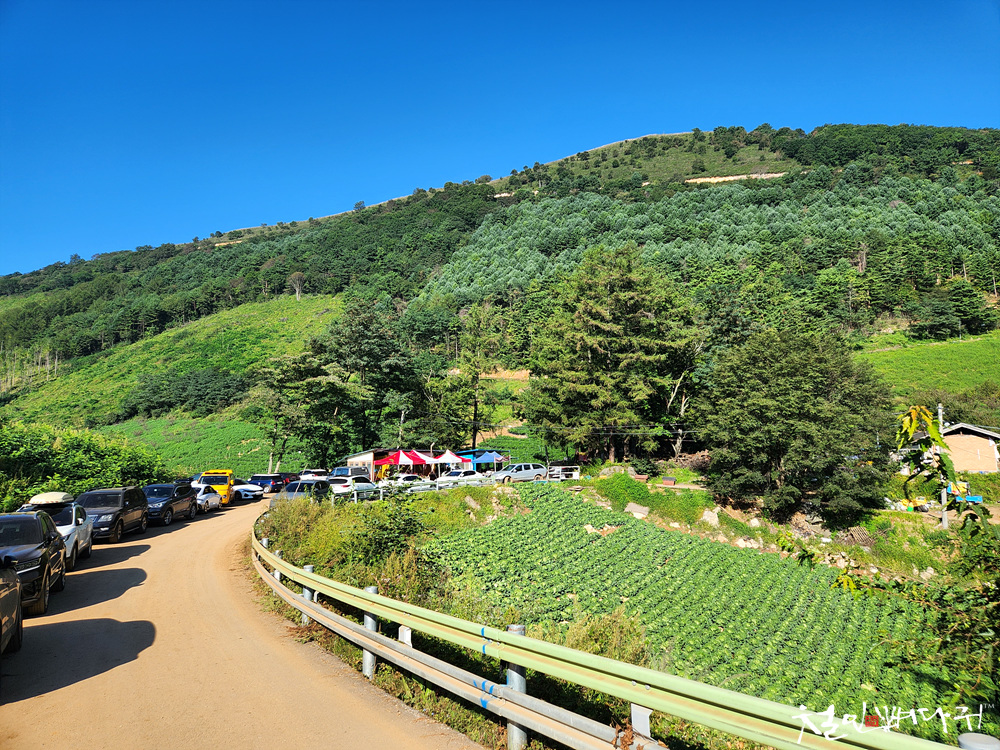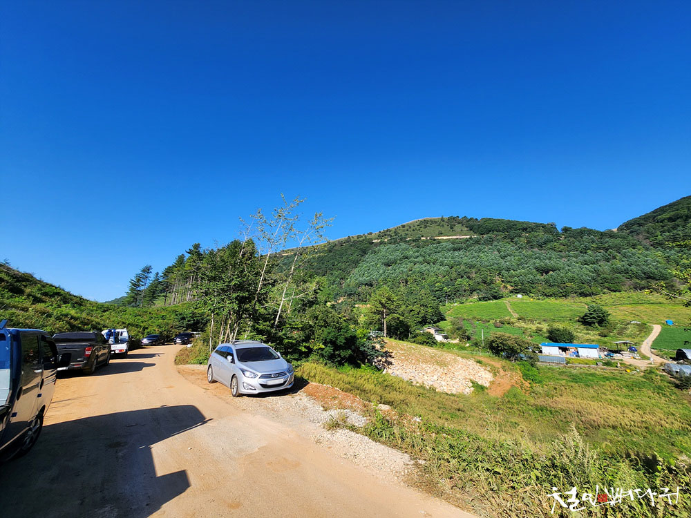 사진의 위치에 주차를 하고 민둥산에 올라갔다 왔습니다.