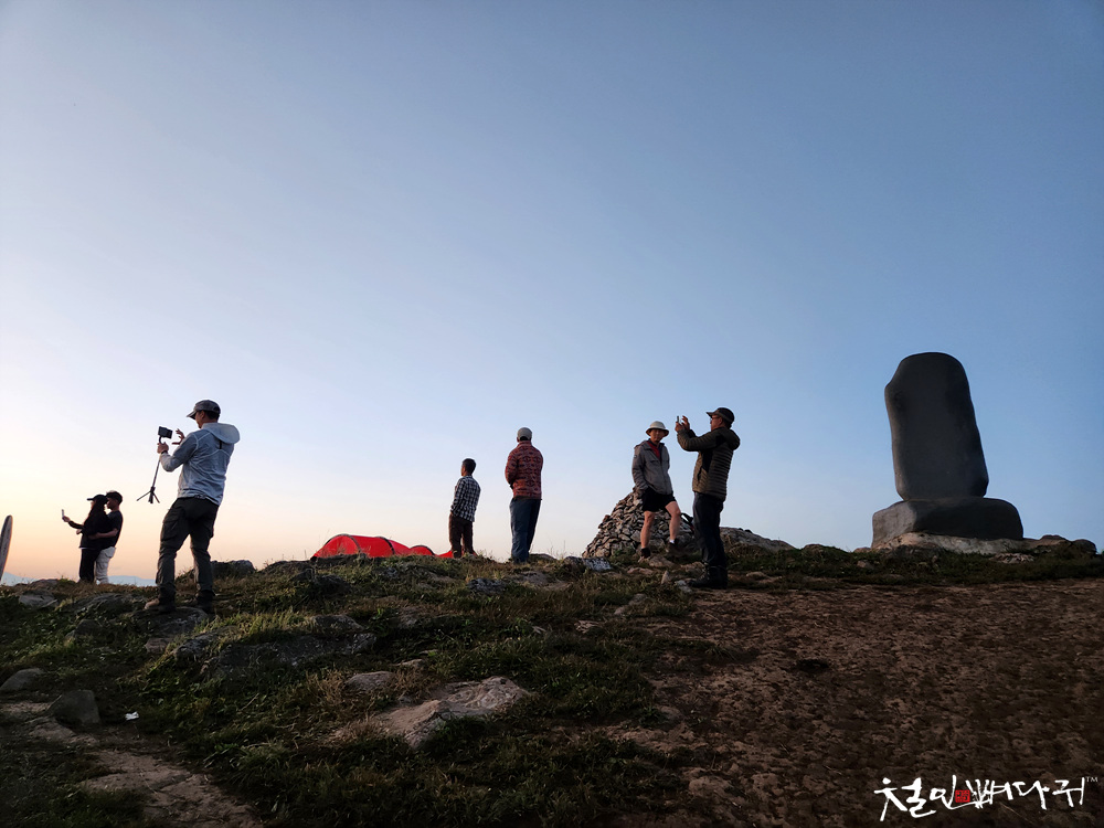 일출이 뜨기 전, 사람들이 올라와서 소란스러울 때,