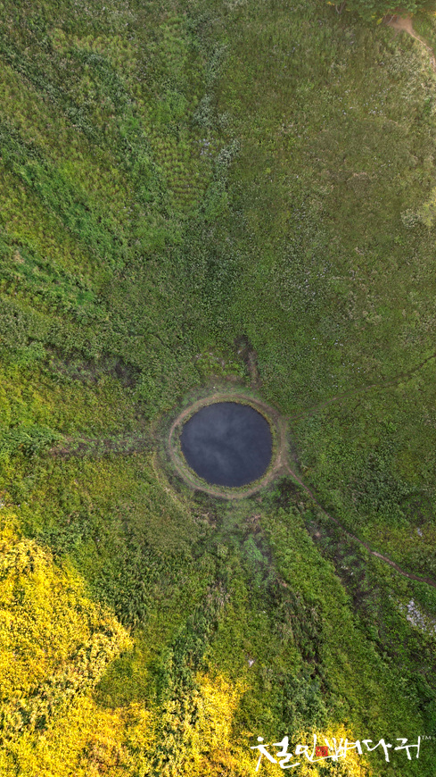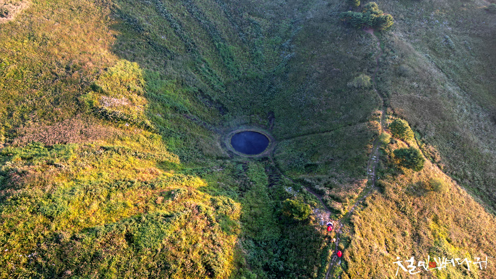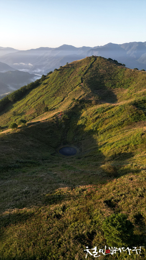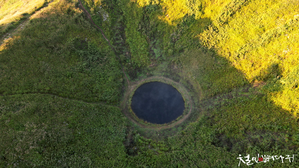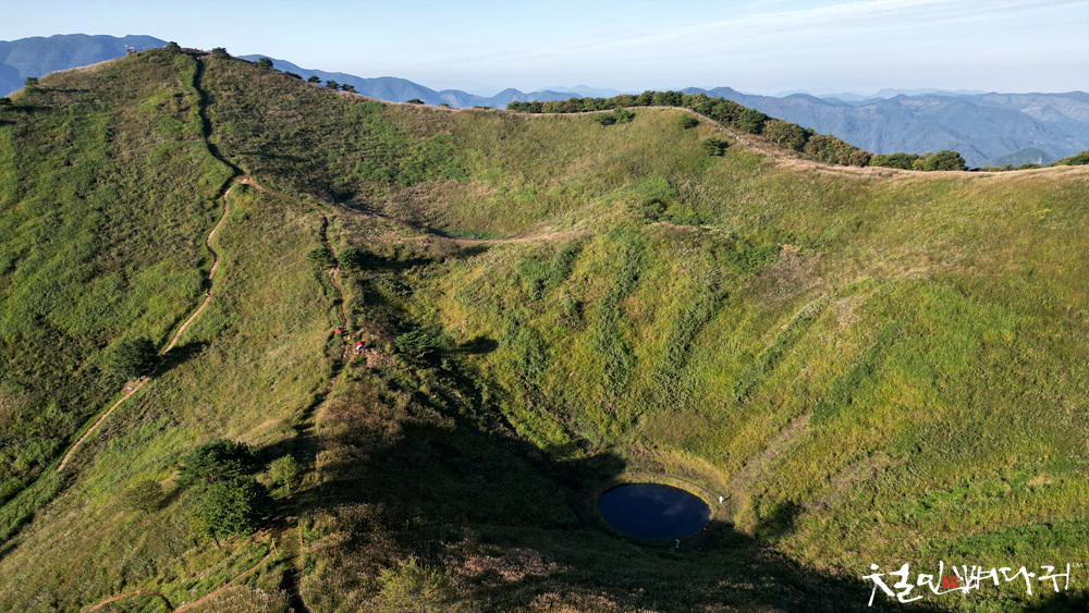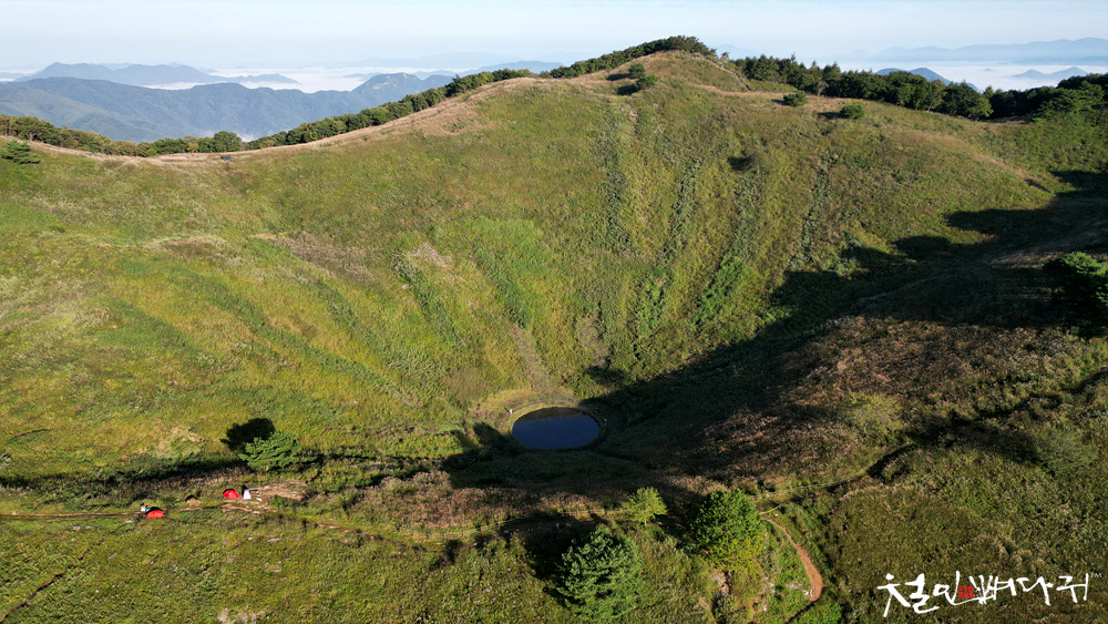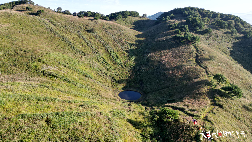 정상 아래로 물웅덩이 돌리네가 보입니다.