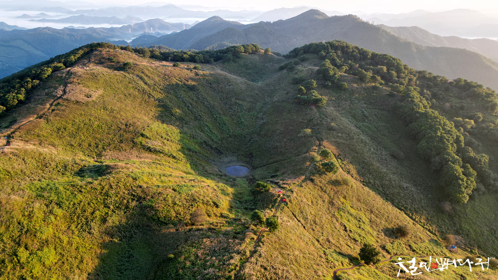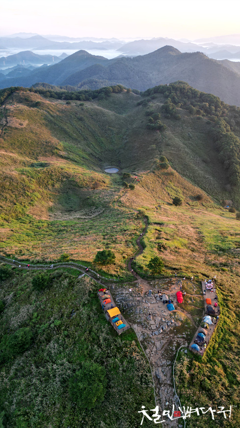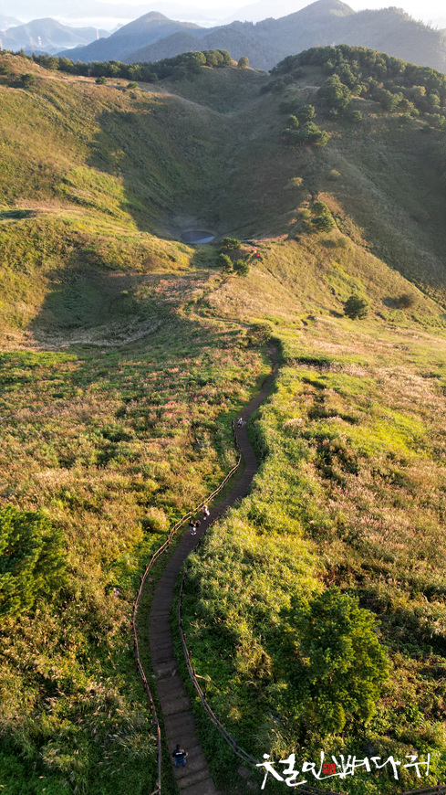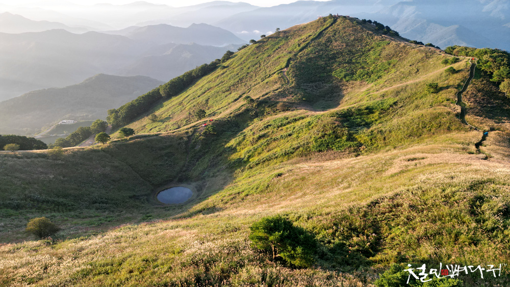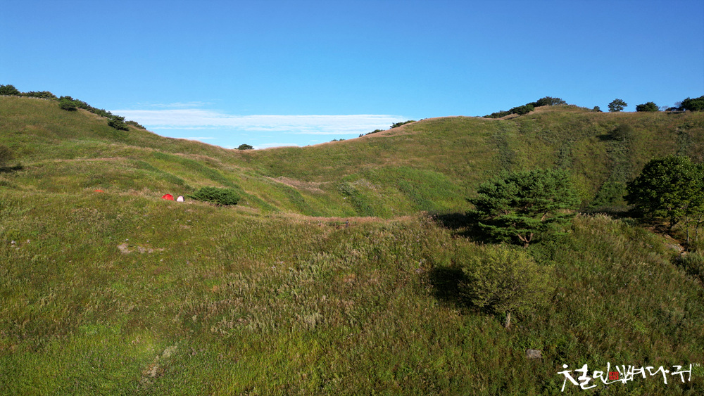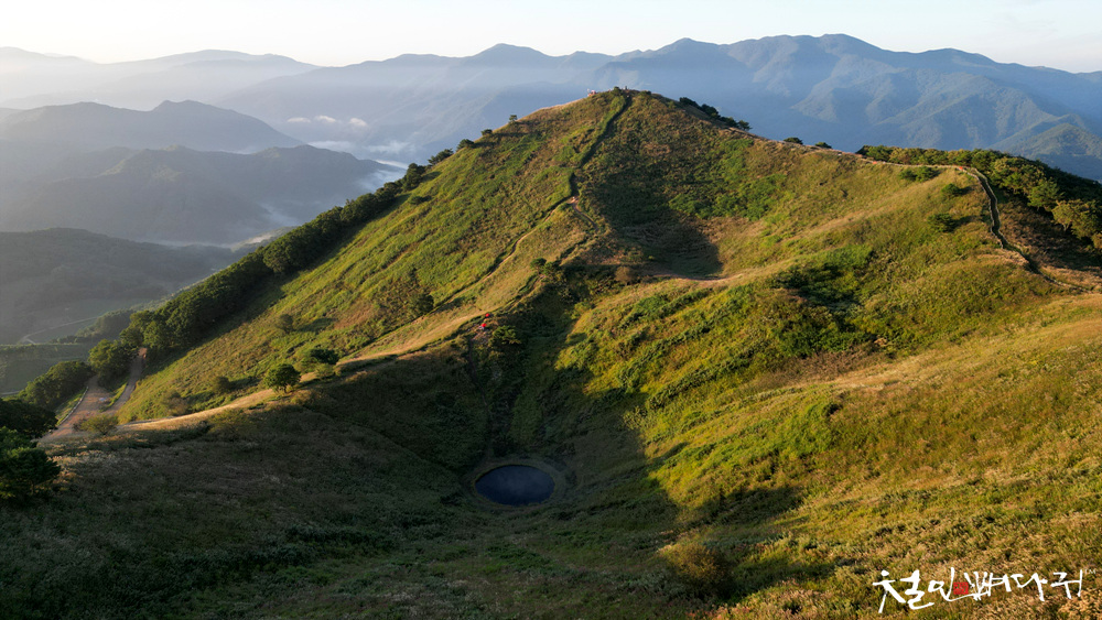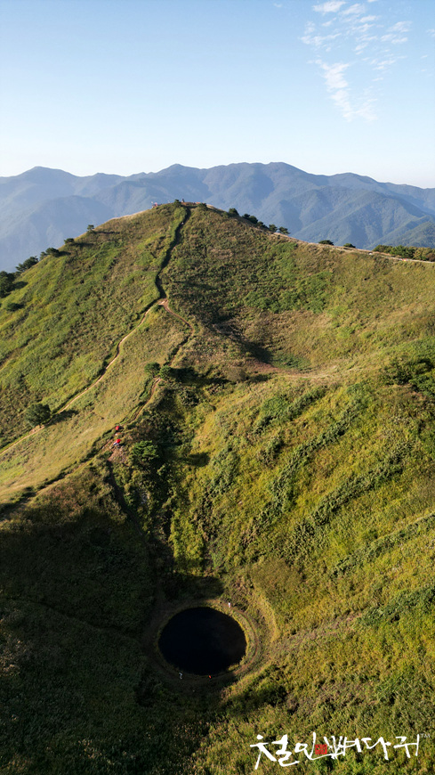 정상 아래로 물웅덩이 돌리네가 보입니다.