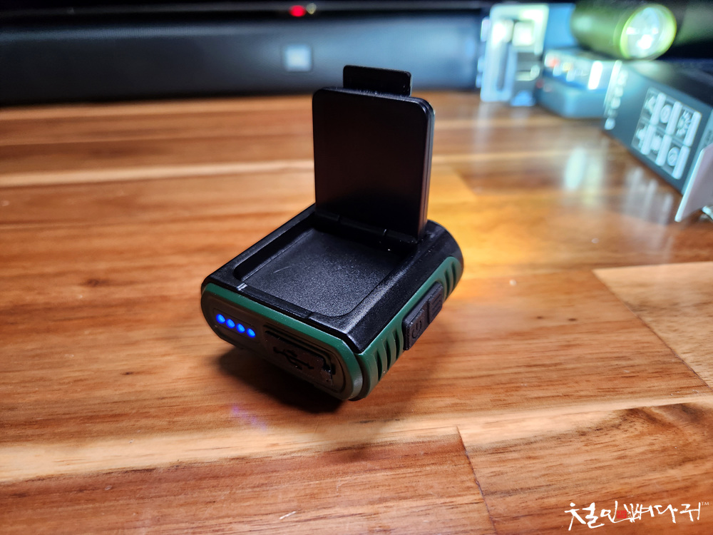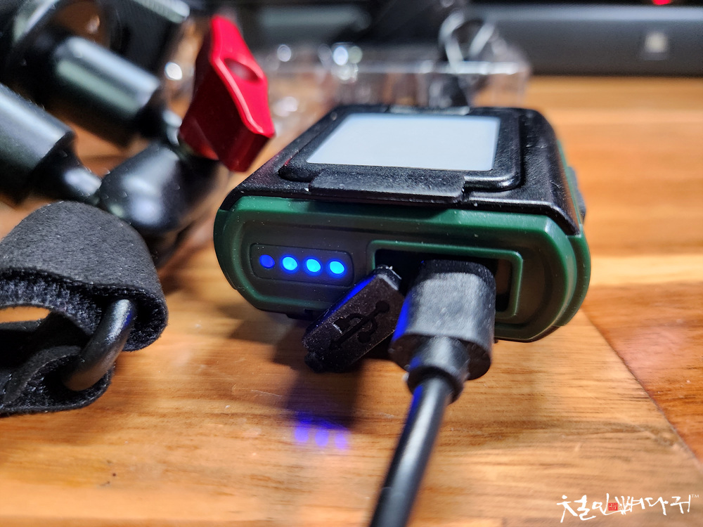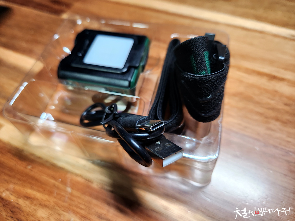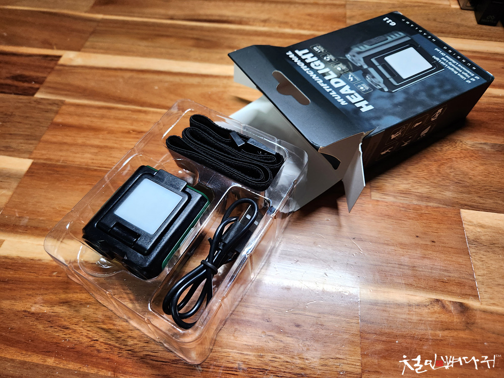구성품으로 헤드랜턴 밴드와 USB-C충전케이블