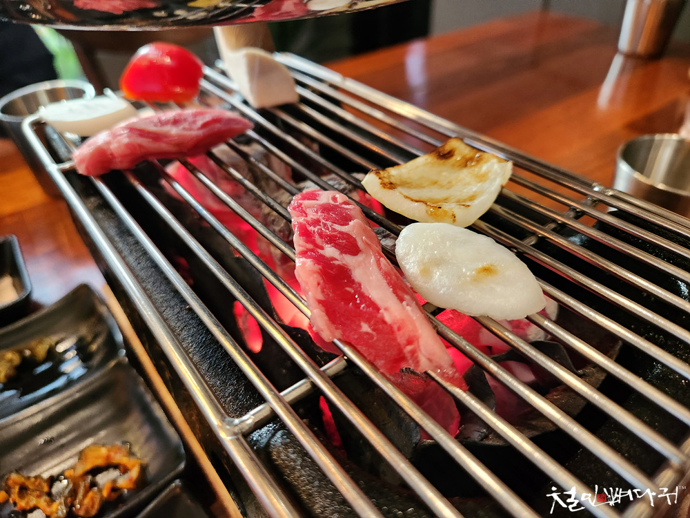 소고기를 굽고, 같이 구워 먹을 수 있는