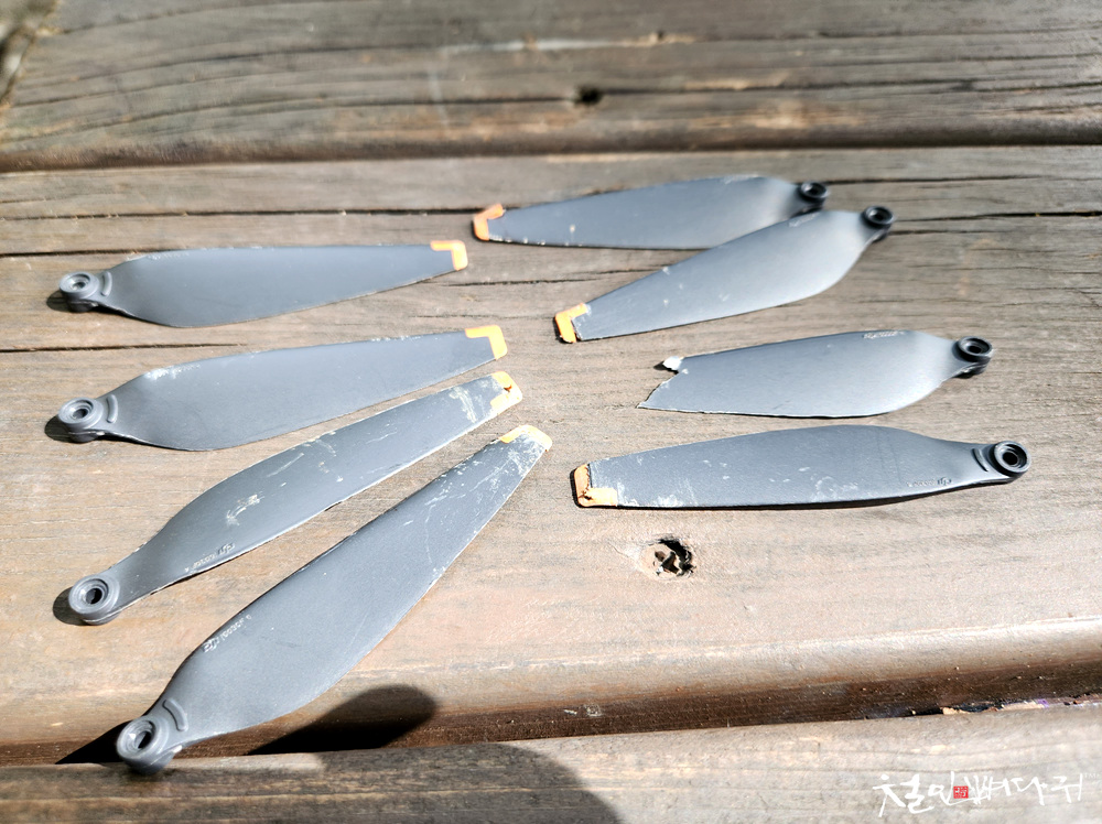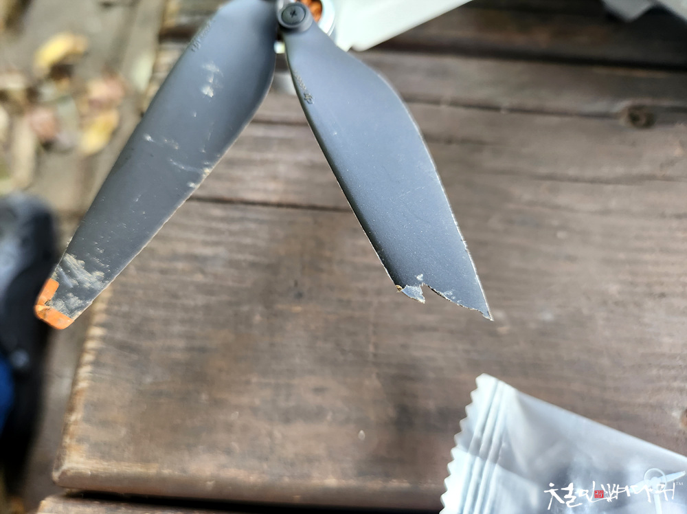 이전에 부딪쳐서 상처 있는 프로펠러가