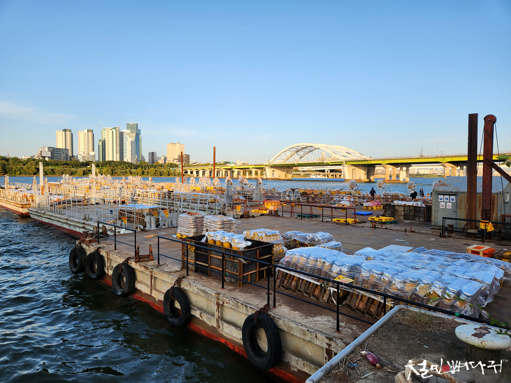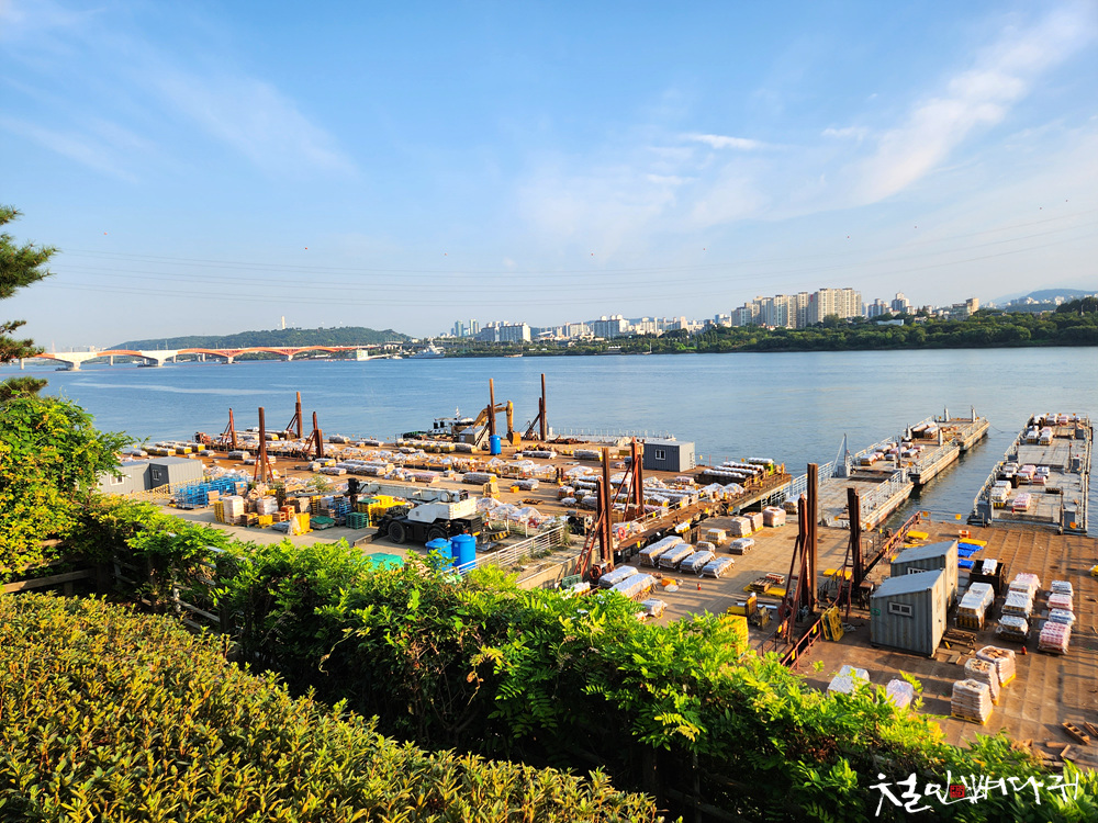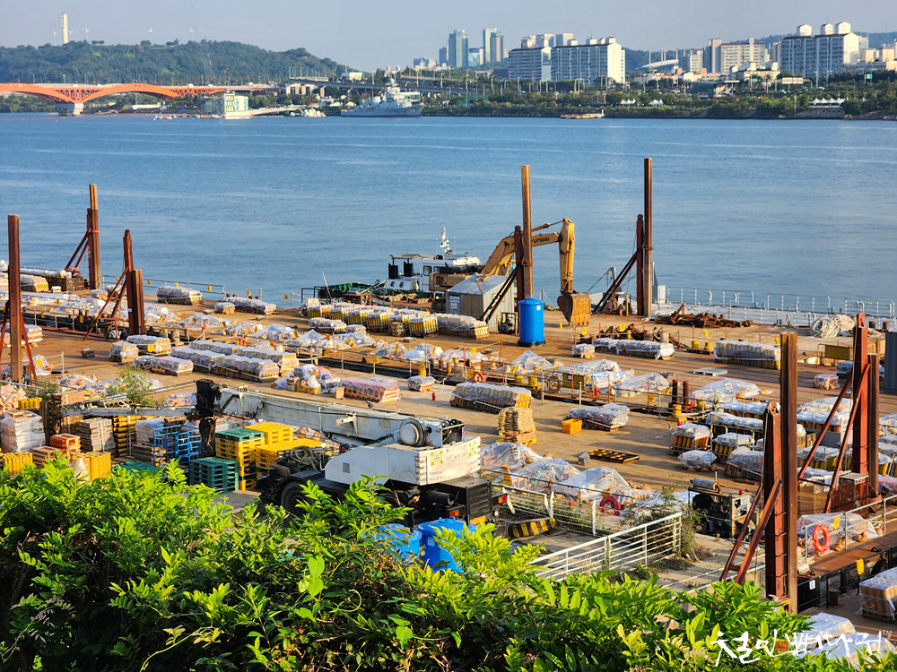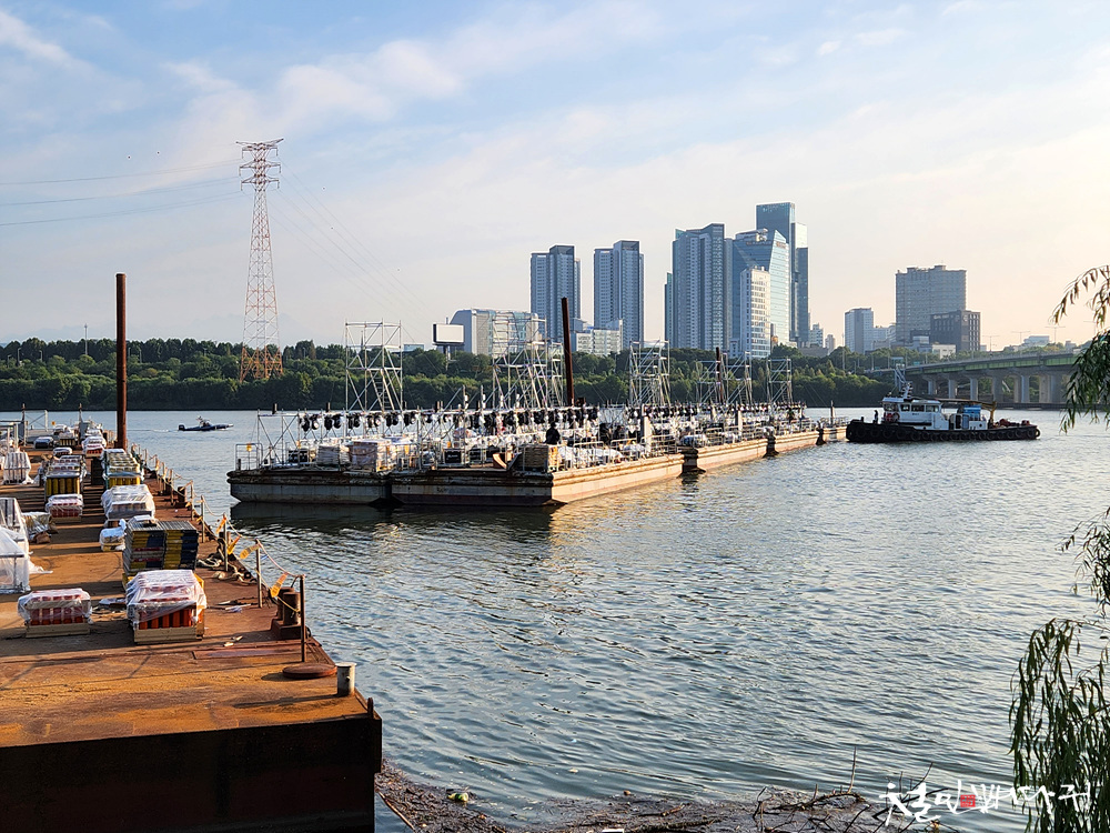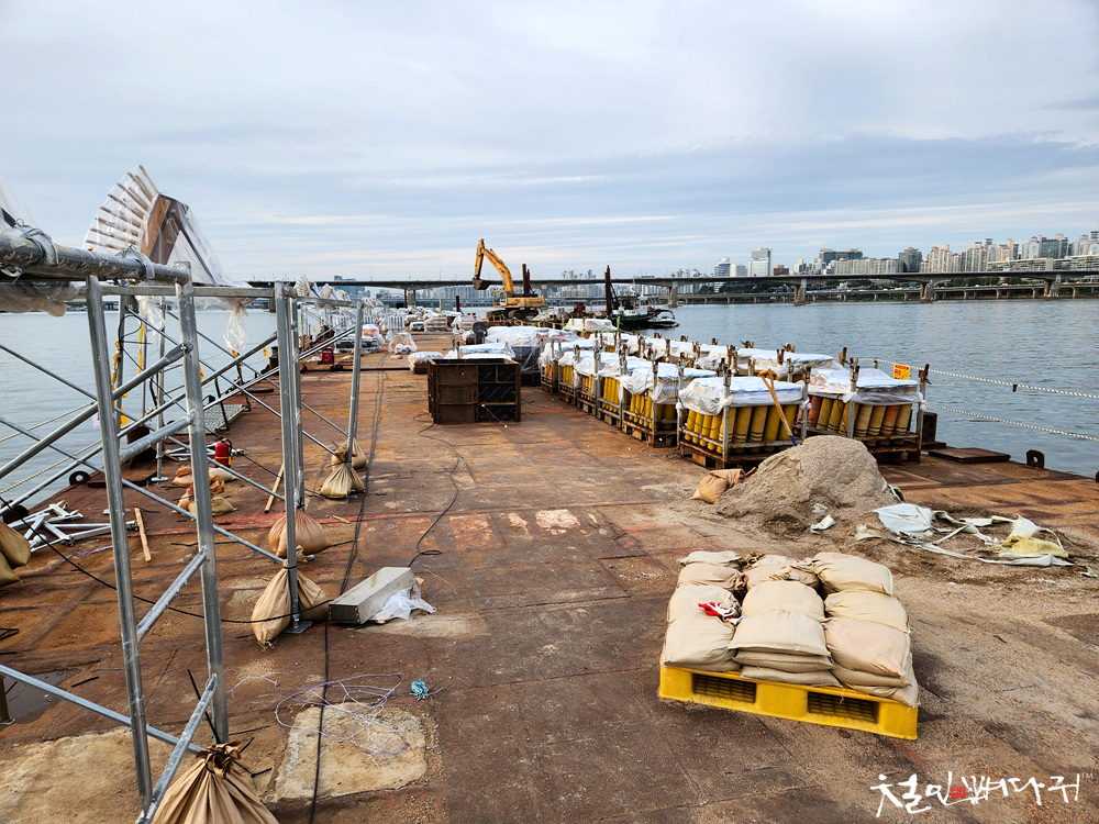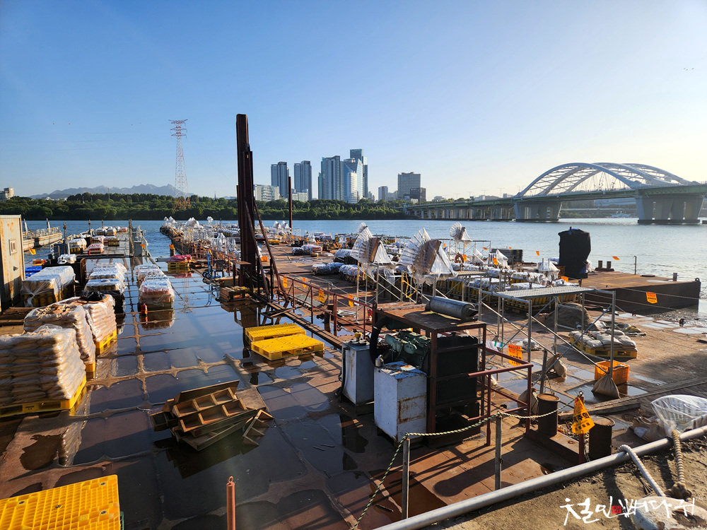 하루뒤, 작업장에서 여의도한강공원발사장으로 작업된 바지선들이 옮겨갔습니다.