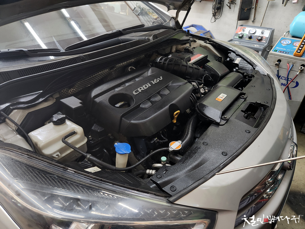 엔진오일 교체 후, 서비스로 엔진룸세척을 받았습니다.
