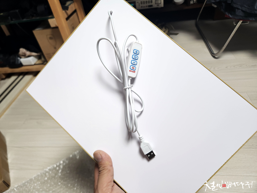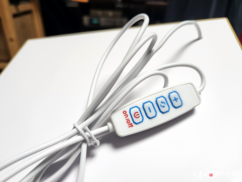LED를 제어하는 리모컨이 선에 부착되어 있습니다.