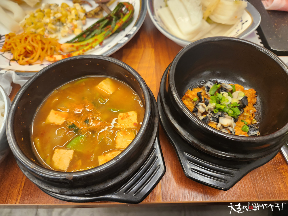 점심특선은 개인별로 된장찌개와 우렁쌈장이 나옵니다.