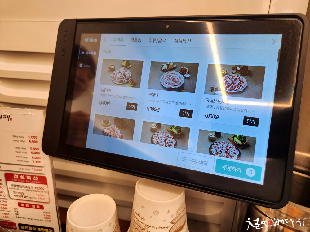 테이블마다 설치된 태블릿으로 주문이 가능합니다.