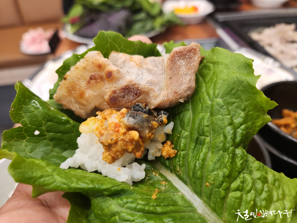 점심특선의 우렁쌈밥대패정식을 주문했습니다.
