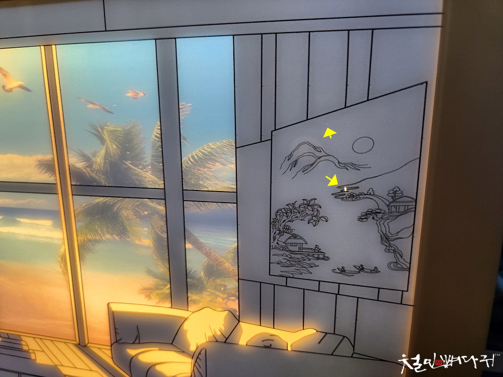그림 안에 있는 액자 부분에 빛샘이 발견되었습니다.