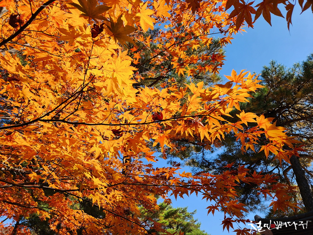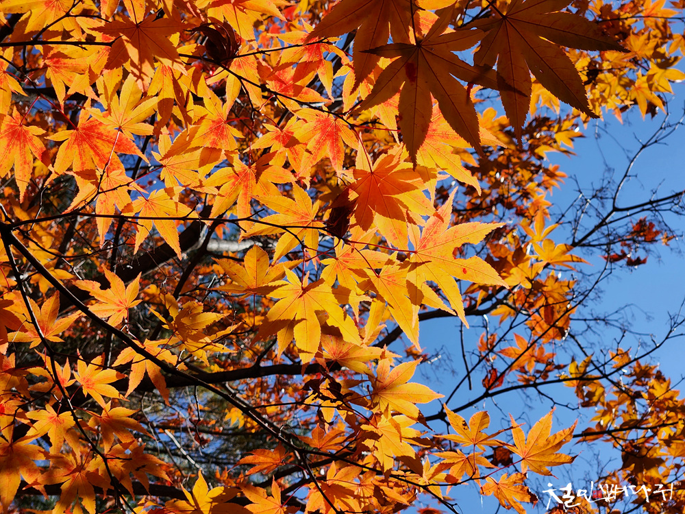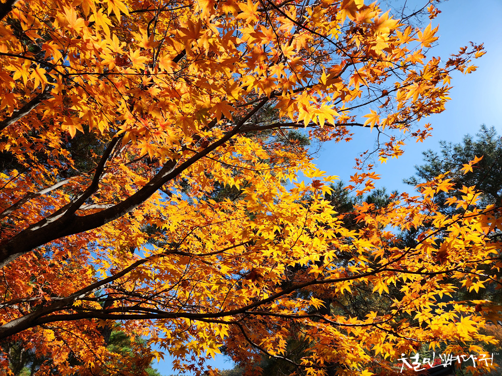 햇빛을 받아 너무 이쁜 가을단풍색을 보여줍니다.