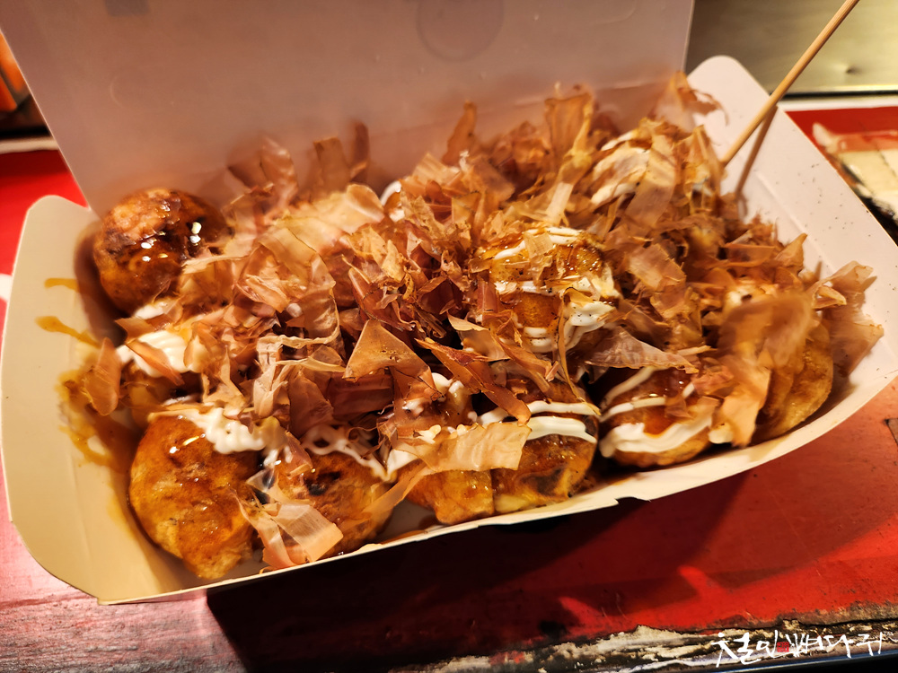 기다려서 요청한 19개의 타코야끼를 받을 수 있었습니다.