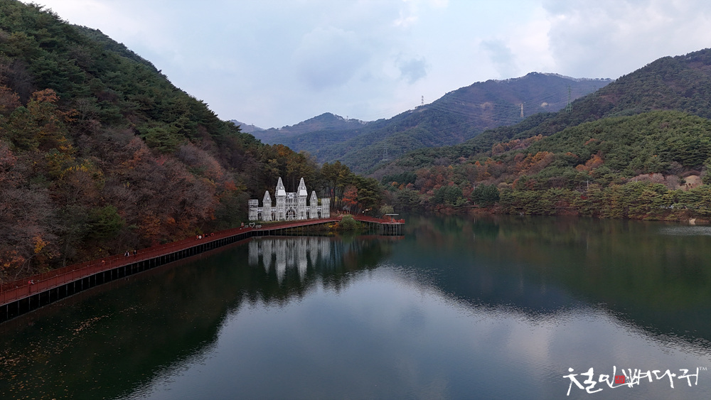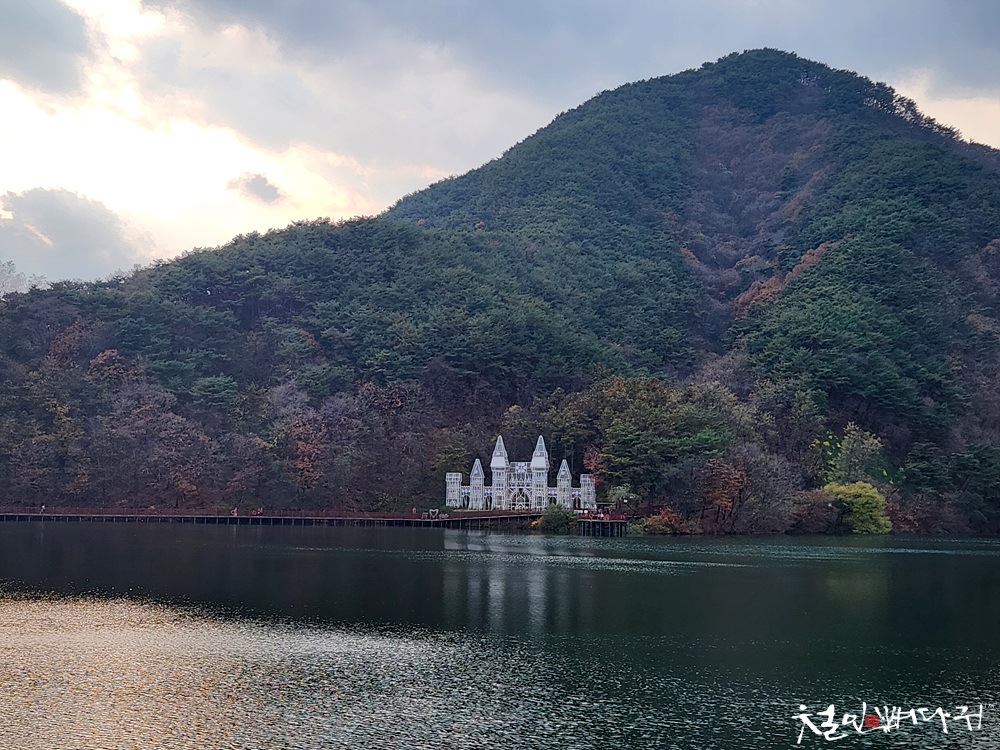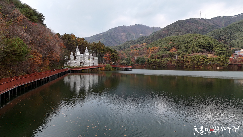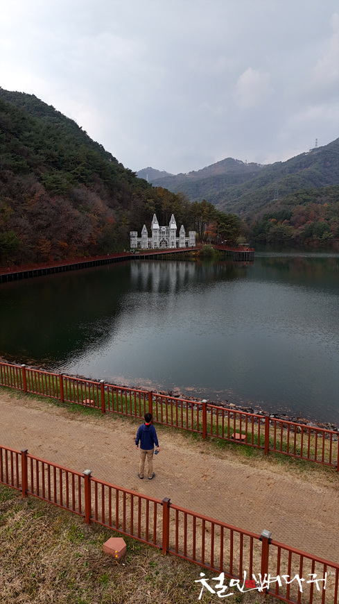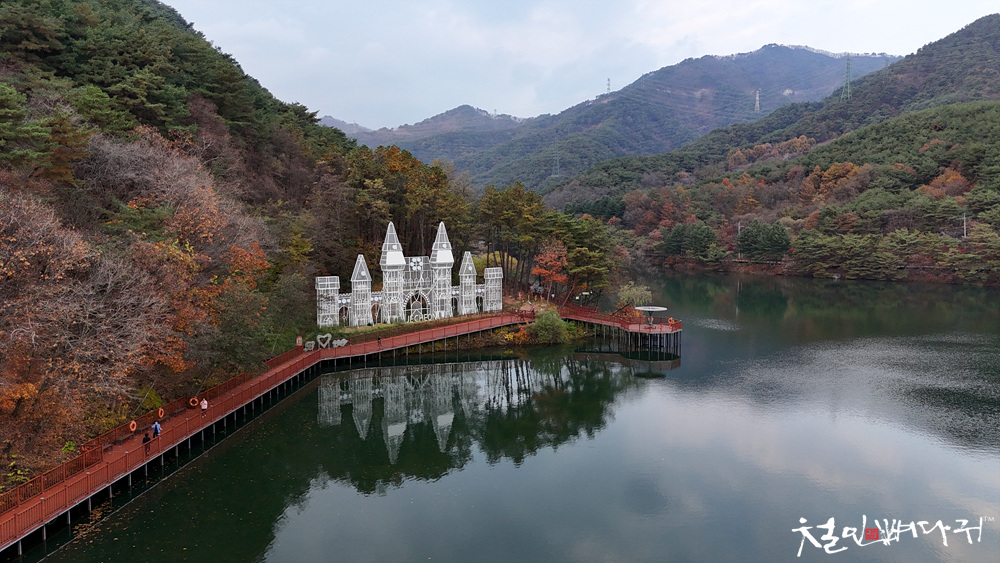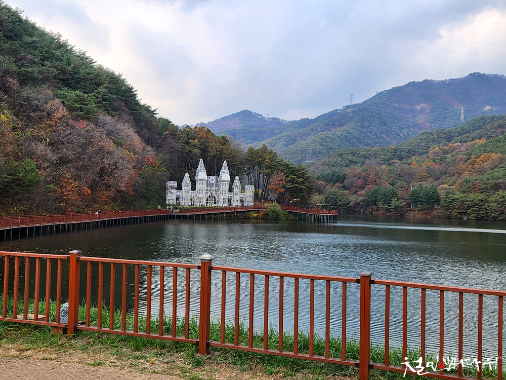 비룡담저수지의 시그니처인 성 모양의 조형물이