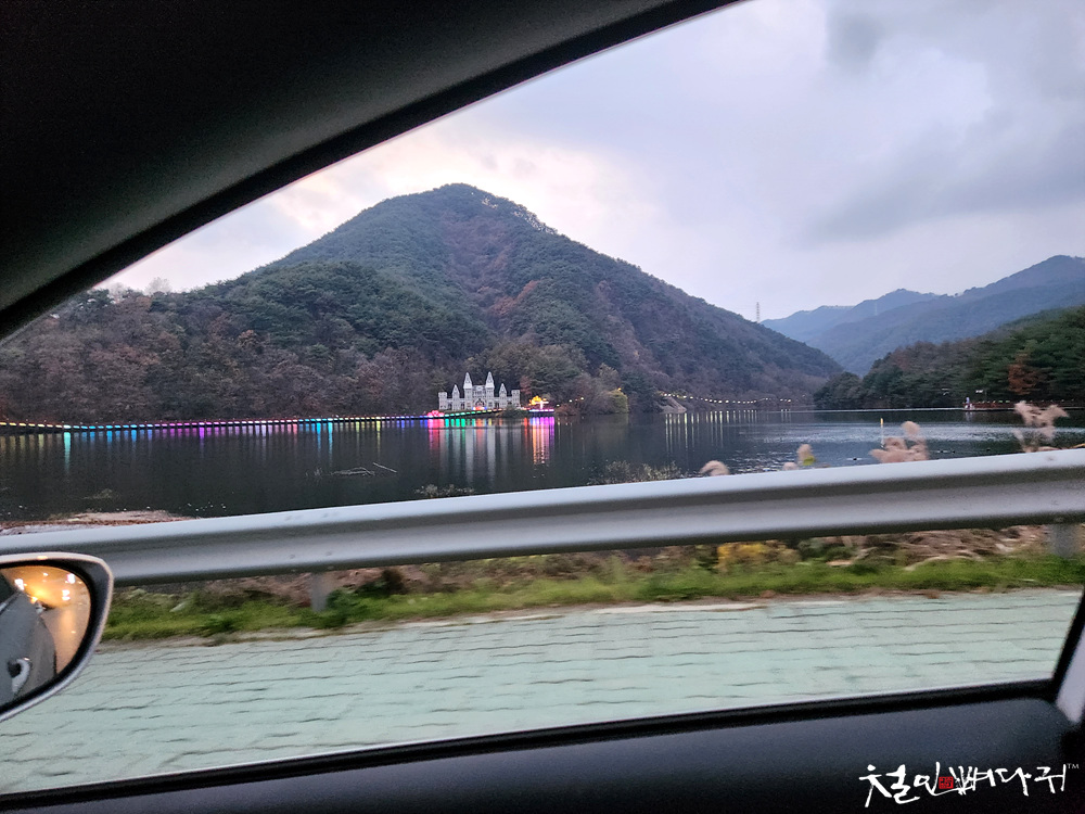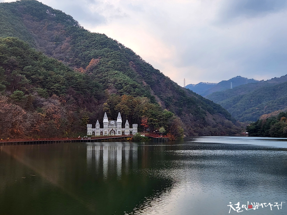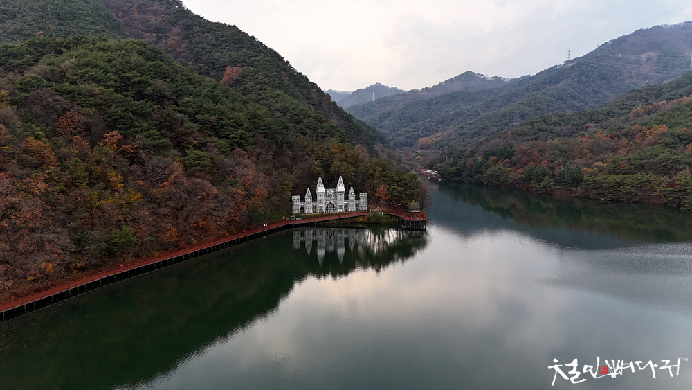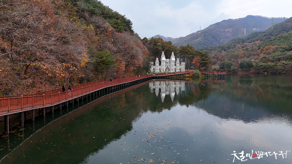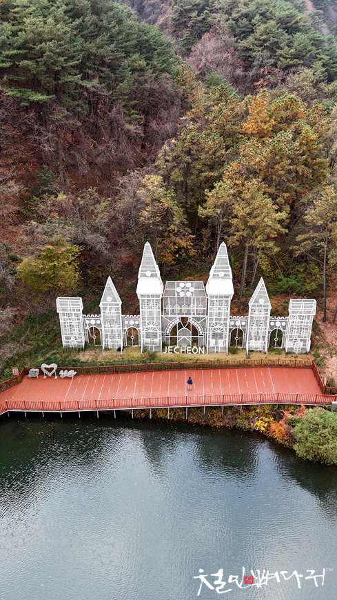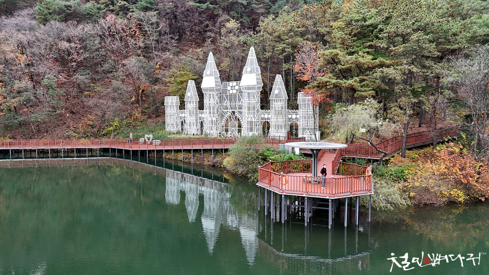 비룡담저수지의 시그니처인 성 모양의 조형물이