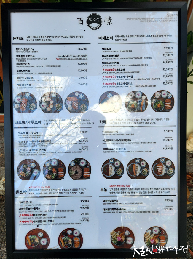 식당에 들어가기 전에 메뉴들을 볼 수 있습니다.