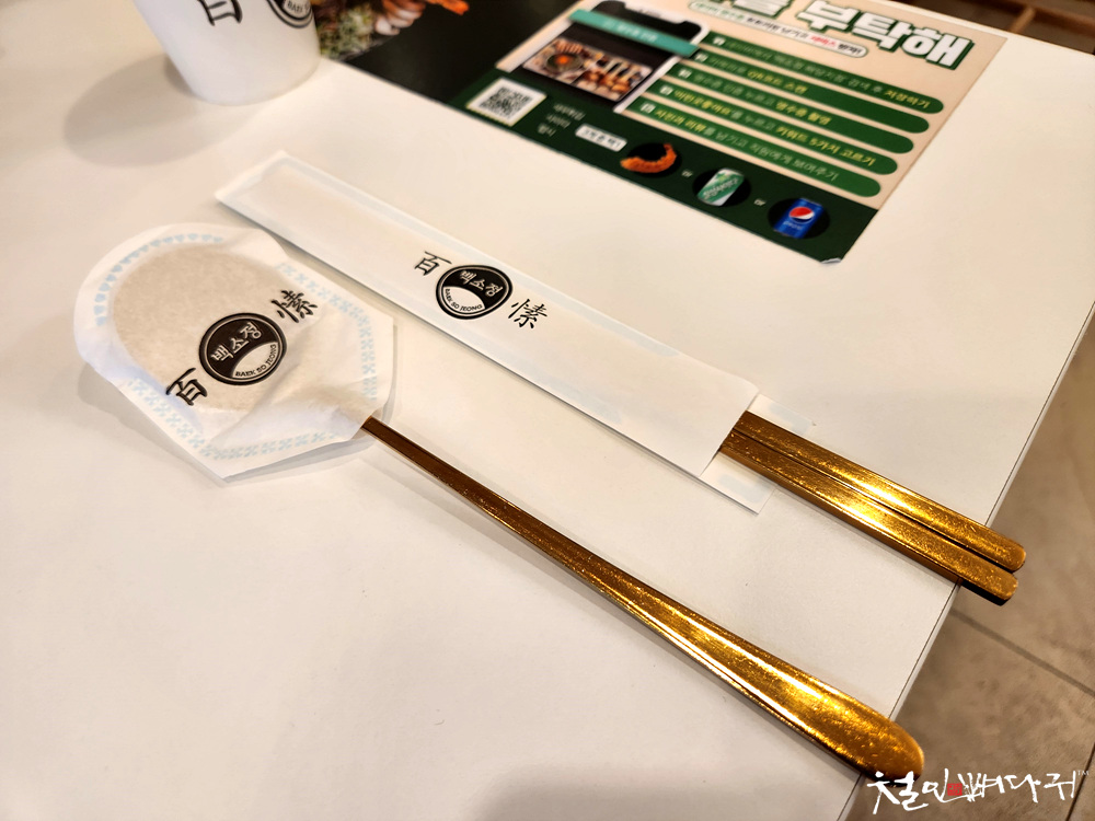 금색 수저와 젓가락이 제공되었습니다.