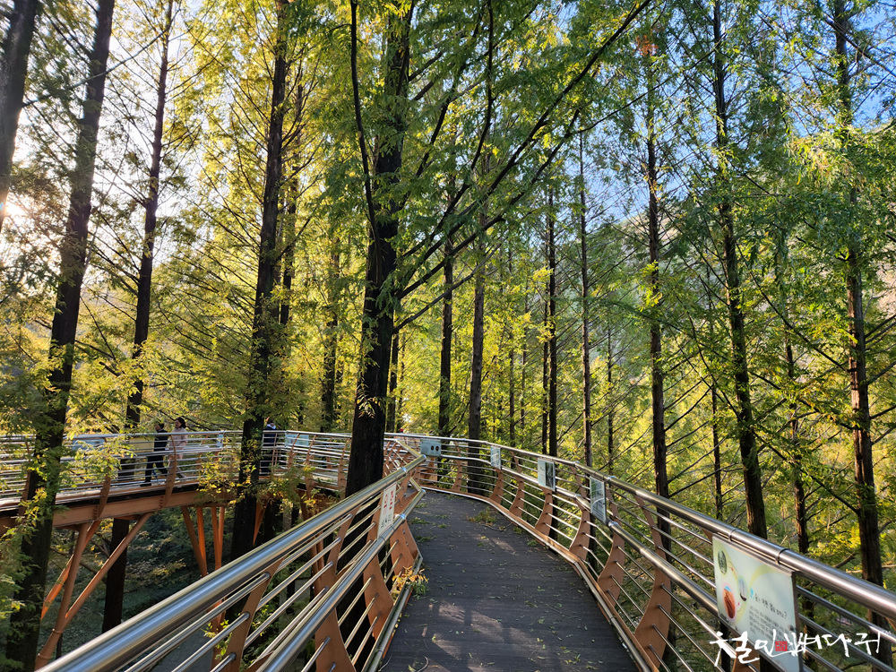 메타세쿼이아 나무들 사이로 걸을 수 있는