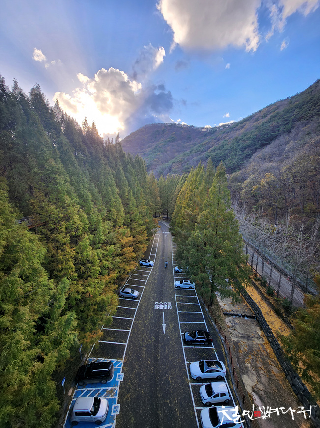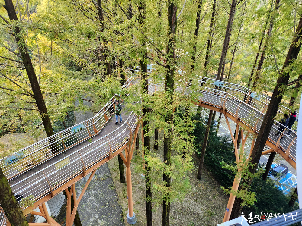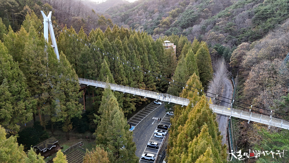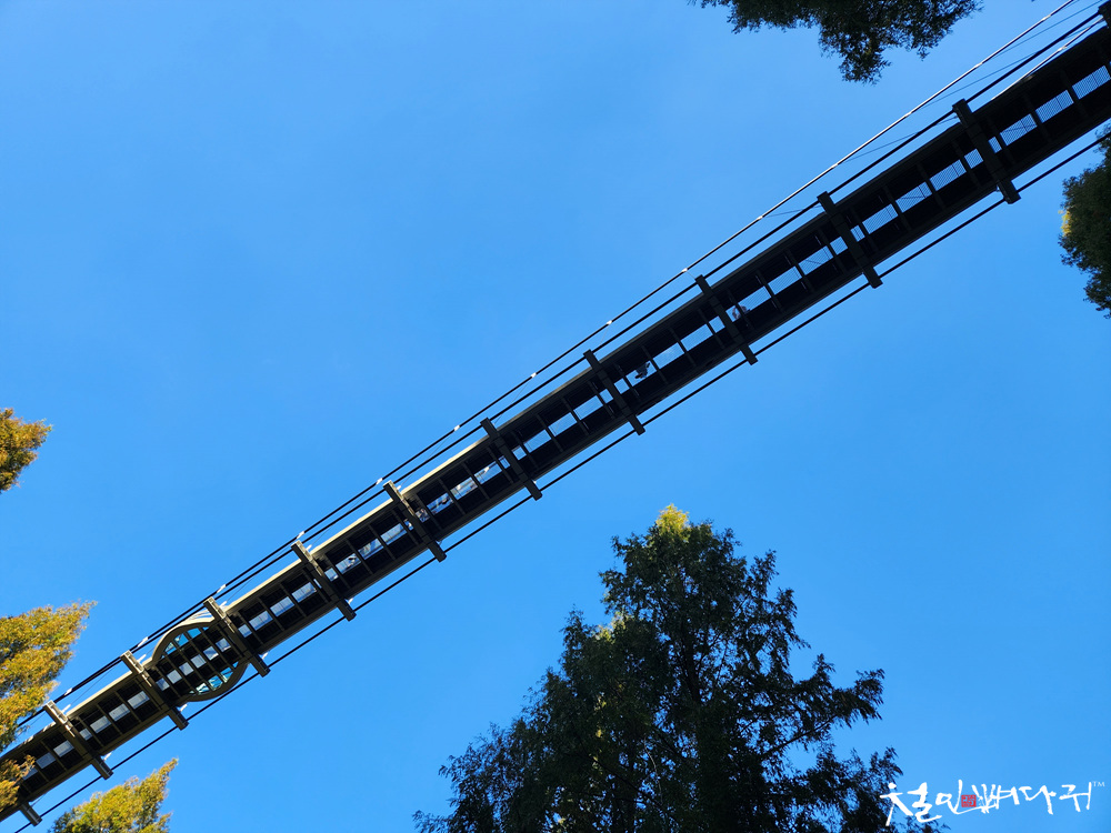 주차를 하고, 머리 위 장태산 출렁다리입니다.