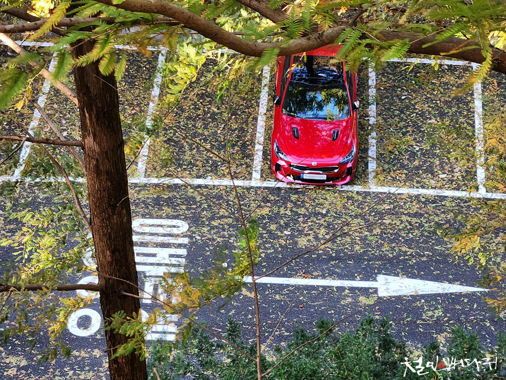 혼자 서있는 스팅어차량이 무수히 떨어진
