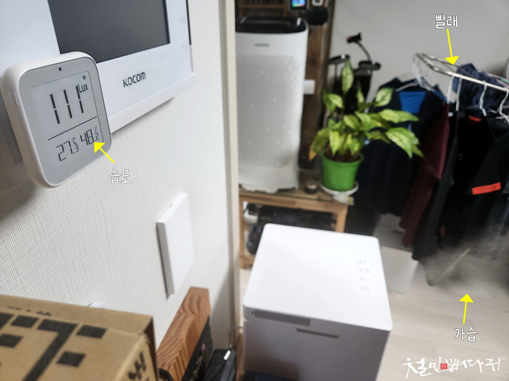 며칠뒤, 빨래를 널어놓고, 가습기를 같이 사용해 봤는데,