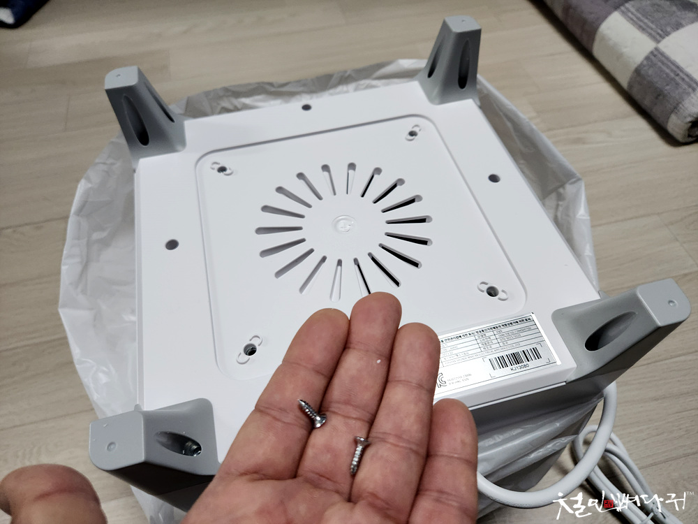 바닥면에 고정을 하면, 나사 4개가 남습니다.