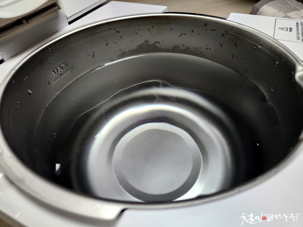 바닥면은 압력밥솥 바닥처럼 눌러지는 부품이 있는데,