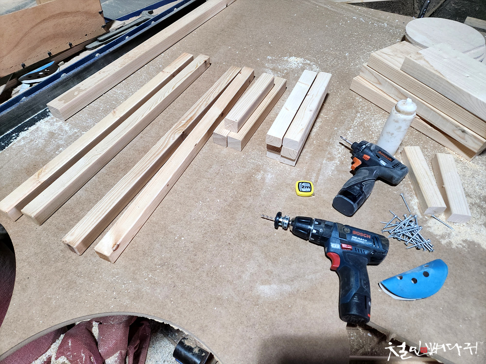 그 외 필요한 나무들은 목공소 여기저기 흩어져 있던