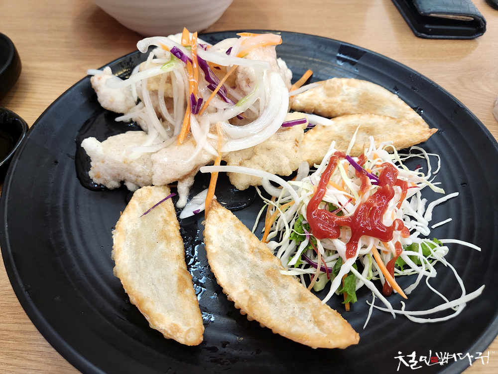 세트메뉴에 포함된 찹쌀탕수육과 만두