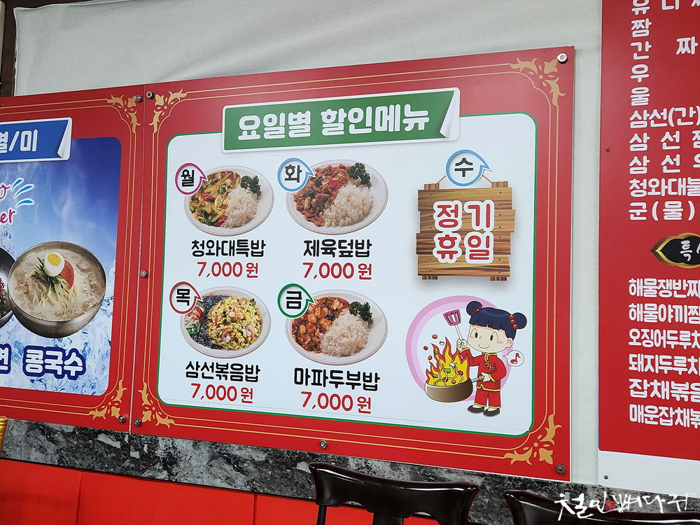 20230904 [대전] 청와대-요일메뉴.삼선짬뽕밥.미니탕수육(산성동) - https://chulinbone.tistory.com/10859