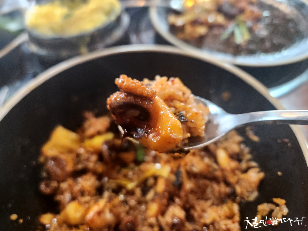 옹기그릇에 쭈꾸미볶음이 나오는데,