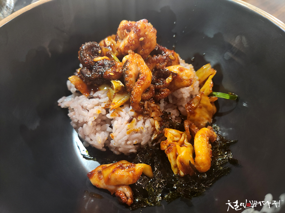 쭈꾸미볶음을 덜어 넣고 비벼서 먹으면 됩니다.