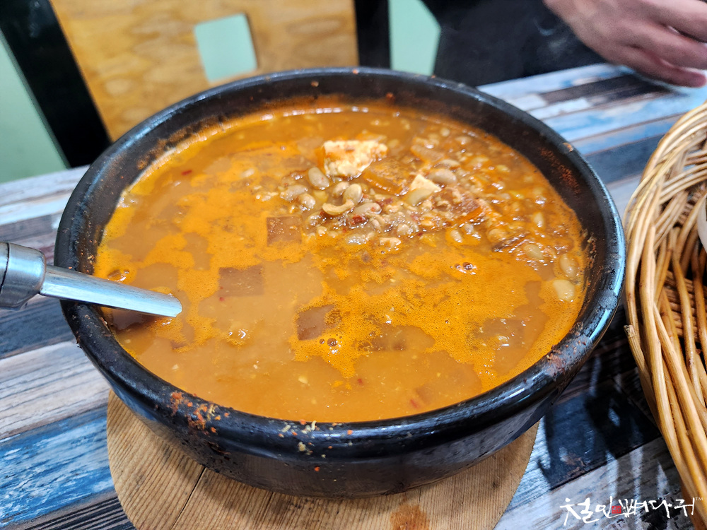 청국장은 약간 얼큰한 느낌으로 끓여 나왔는데,