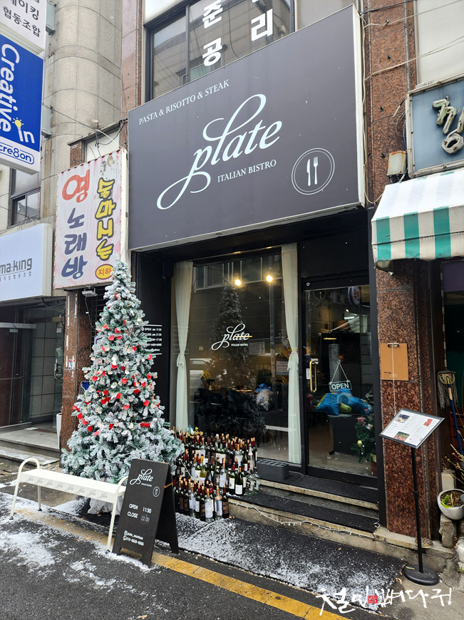 하얗게 내린 눈까지.. 식당 이미지와 잘 어울리는