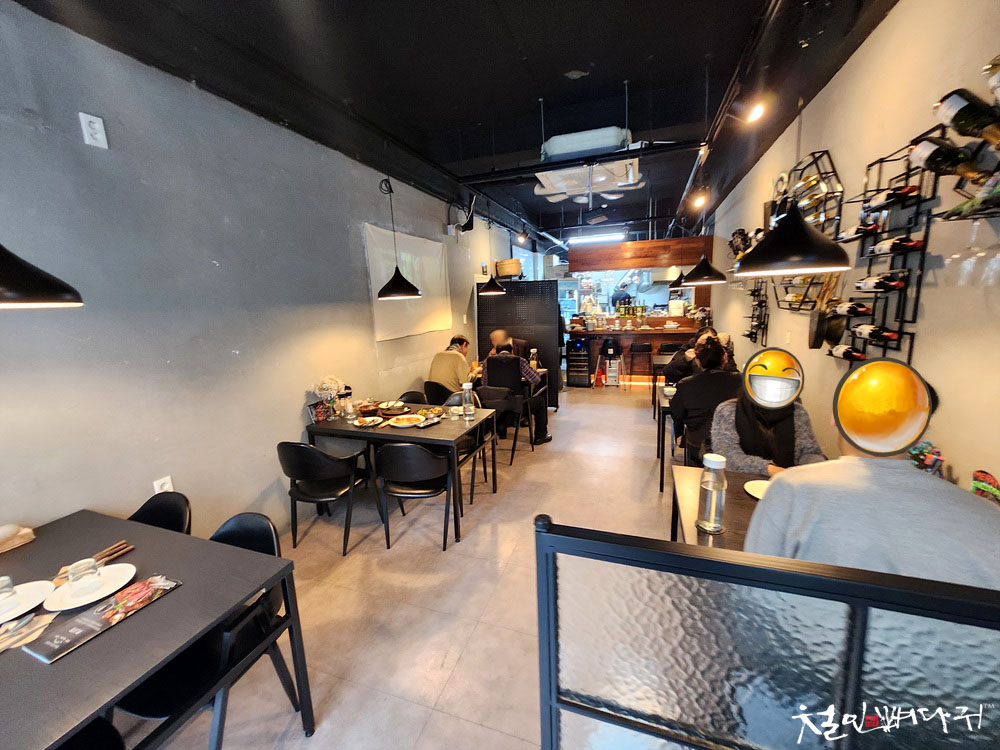 식당은 긴 구조로 되어 있고, 안쪽으로 주방입니다.